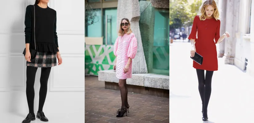 When it concerns tights, the options are unlimited. You only need a set of essential black tights to complete the look. Underneath a basic or patterned dress, layer essential black tights and finish with boots or shoes. Play with tights in different materials and designs if you really want to become a little more artistic. Underneath your dress, use lace-embellished tights for a delicate and feminine effect. If you’re going for an eye-catching focal point to your style, pair colored or patterned tights with a neutral dress. Wear fleece-lined tights when it’s freezing outside to add extra warmth and coziness.