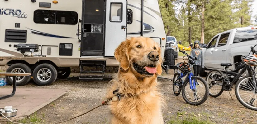 Some campgrounds need paperwork, so bring copies of vaccination and health documents. Your pets should wear a collar with your phone number on it if your pet wanders off.