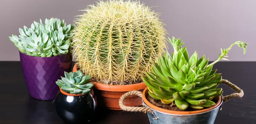 These plants thrive in direct sunlight. Have to be watered only once a week during summer and once in three weeks during winter. Cacti come in different shapes and sizes. You can collect them and create a pretty cacti corner.